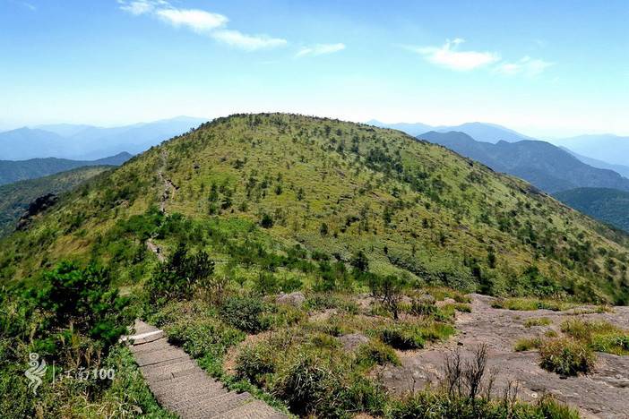 登顶黄茅尖的路线不是游客走的景区步道,而是另一条笔直上坡的古道,快接近山顶的草甸非常有感觉。整座山都在景区范围内,道路状况非常好。