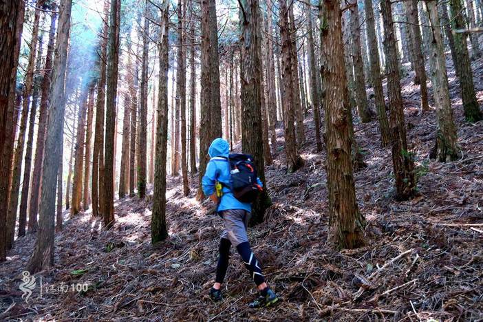 9.从折返点回头,抵达烧香岩CP点后,无需再次打卡,直奔前方,共三公里的千米大下坡,直到终点横溪村。一开始是烧香岩顶的草甸,随后沿着路标在灌木林中左右迂回前进,然后是一段大角度防火道,注意落叶,小心防滑,最后是一段漫长的持续下坡的荒芜破败的古道,无数次的弯道转折无穷无尽,一定会让你怀疑人生。