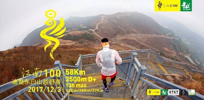 江南100第二届诸暨东白山越野赛为江南100系列赛之一, 是江南地域特色风情浓郁的超级马拉松,并已获得ITRA积分认证。赛事分58km精英组(58km 3500m D+,13Hmax)38Km全程组(38km 2200m D+,9Hmax)22Km体验组(22km 1160m D+,7Hmax)3个组别,赛道类型多样化,难度适中,具有诸多人文景观和山岳风景。