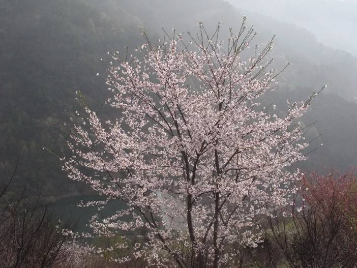 四明山上的野樱花不仅数量多,种类也十分丰富,据最近的调查研究表明,共有7个野樱花的种类:迎春樱、浙闽樱、大叶早樱、毛叶山樱花、山樱花、沼生矮樱、钟花樱等。