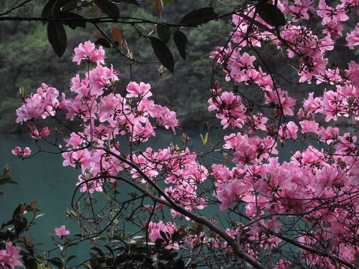 开黄色花朵的杜鹃叫“羊踯躅”,又叫“闹羊花”,观赏度也很高,但是此物是有一定毒性的,其花朵是一味有名的毒性中药。另一种叫“马银花”的杜鹃花分布也很广,也是一种常绿的杜鹃花种类,开花时花团锦簇,花叶并现。马银花的花朵形态与映山红的差不多,颜色却是呈淡粉红色的,色彩上淡雅一些。普陀杜鹃是新近才从映山红中分出来的种类,除了花色为紫红色,其余与映山红没有区别,多数生长在低海拔区域或沿海一带。满山红,又叫“三叶杜鹃”或“紫花杜鹃”,多数生长在高海拔区域,花色偏向紫色,花形坚挺而精神。