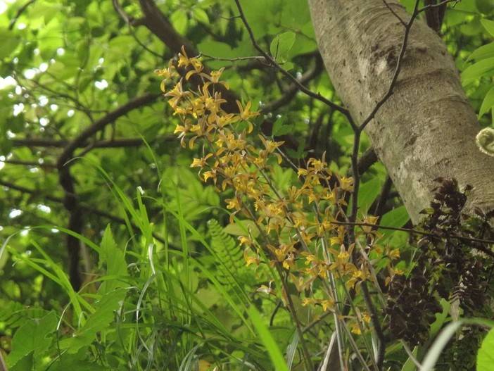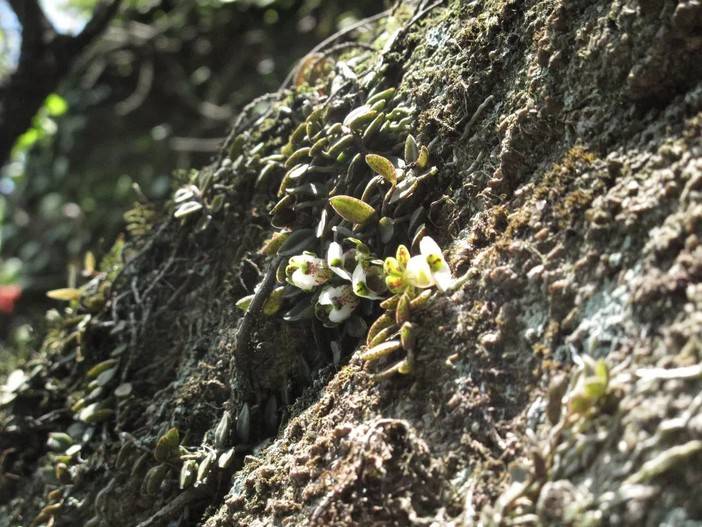 风兰是种典型的“仙草”植物。从其名字上看,风兰就是要长在通风良好的环境中,通常附生在树杆或岩石上,与一般生长在泥土中兰草全然不同。风兰的花朵洁白高贵,具有细长弯曲的距,近距离看会让人爱不释手。我们四明山区域内发现有成千上万的风兰生长在古树上,春天开花时奇香无比,算是四明山中的响当当的明星植物之一。