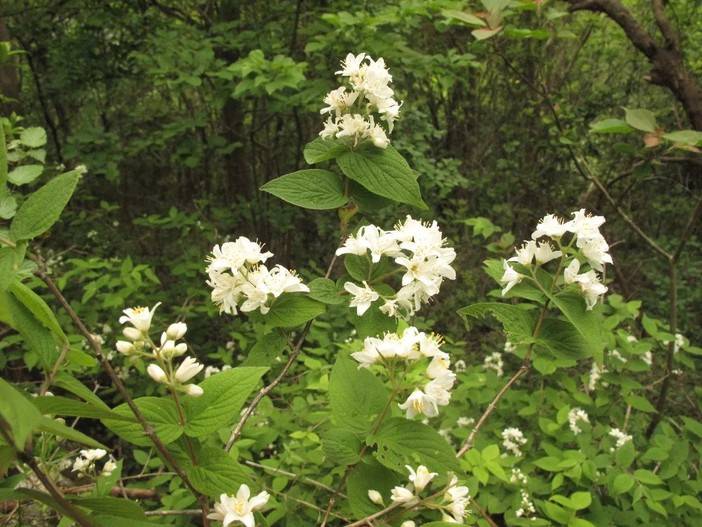 虎耳草科的溲疏属种类比较多,有黄山溲疏、宁波溲疏(模式标本采自宁波)、天台溲疏(为本省特有种类)和长江溲疏等都是春季开花的种类。和溲疏属同时开花的疏毛山梅花也是开白花的,花色有些素雅,但开花时花朵浓密,体量也不小,实际观赏颜值是很高的。同样开白色花朵的还有山毛榉科的许多大树,比如板栗、苦槠、白栎等,开花时满树白花犹如白雪一般蔚为壮观,而且板栗开花时浓香无比,老远就能闻到它们的花香。