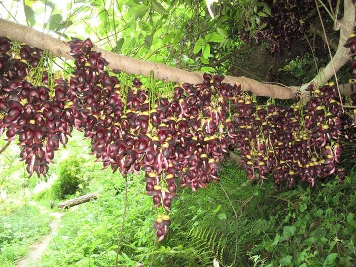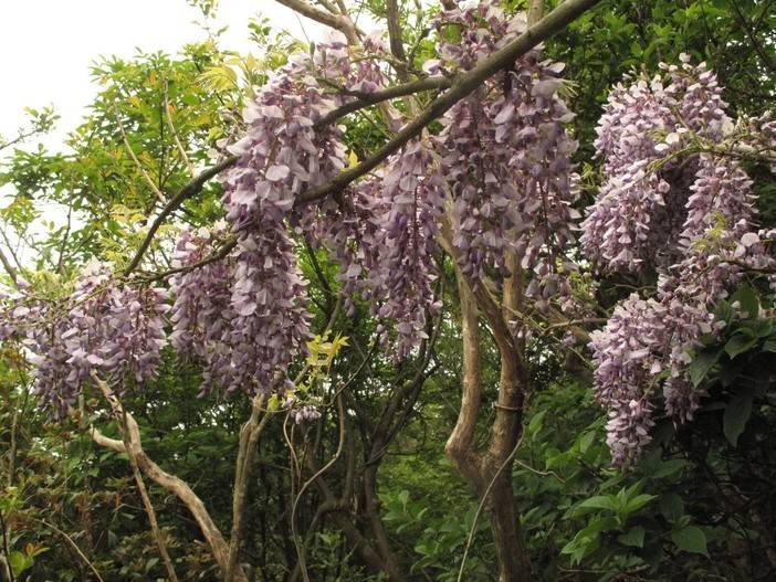 豆科植物的种类很多,比较吸引眼球的有紫藤花,紫色的花朵像紫葡萄一样一串串地挂满藤条,是豆科植物中的杰出代表之一,常被用于庭院棚架绿化。另一种豆科植物叫“常春油麻藤”,多数生长在沟谷地带,藤蔓长度时常能超过10米,藤茎的直径可达20cm,是著名的大型绞杀植物。它的花朵硕大且厚实,花形像鸟雀,密密麻麻的花朵从粗壮的老藤上挂垂下来,让初次遇见的人们大为惊奇。这种状况在植物学中叫“老茎生花”现象,在热带雨林中很是常见的现象。可见,看到有粗大的古藤出现时,就有种来到雨林中的味道。华东木蓝的花朵比较清秀飘逸,花朵呈粉红色,呈总状花序排列,开花时与嫩绿的新叶相配,可谓“花红叶绿”人见人爱。