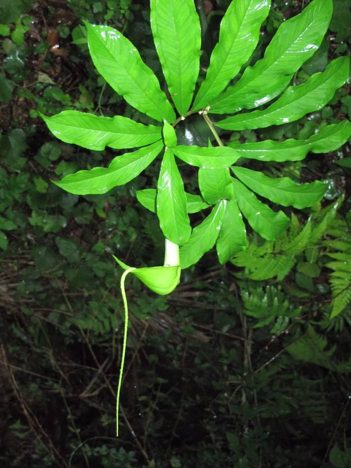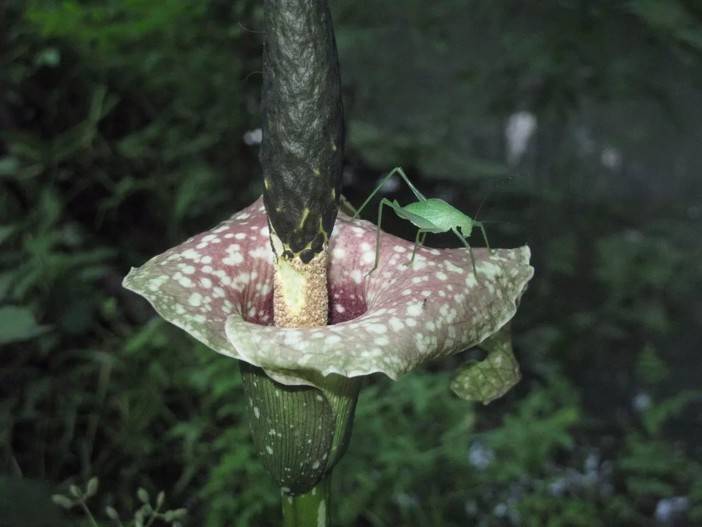 在5月份开花的种类中还有天南星科的一些植物,比如华东魔芋和异叶天南星。它们是有一定毒性的传统中药材,具有奇特的佛焰花序,看上去像是天外来客,多数生长在阴湿的沟谷和树木中。