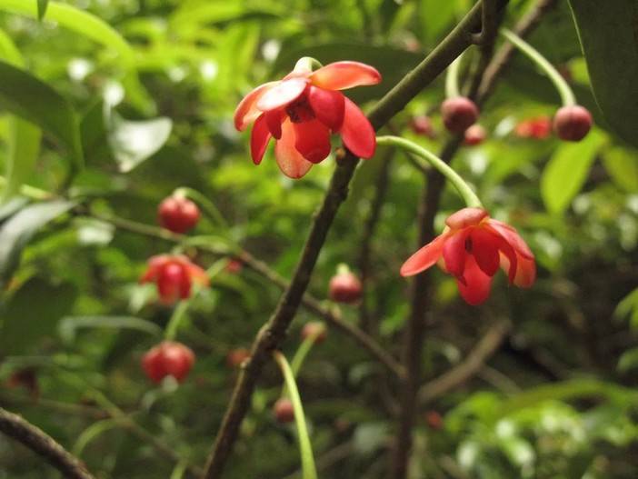 银缕梅是国家一级重点保护植物,6700万年前就出现在地球上与恐龙同时代的活化石植物,系我国特有种类。目前只有在江苏、安徽和本省天目山区很少数地区有发现记录,无比珍贵。笔者首先在四明山高山上发现这种古老的乔木,至今四明山上已发现有3个分布点,共有70多棵,其中有500年以上的古树3棵,是国内银缕梅重要的分布区。银缕梅的花朵十分独特,早春3月就已经开花,但花朵中并没有花瓣(严格意义上讲,叫“无瓣梅”更加适合它),开花时只有红色的花药伸出花苞外边,雄蕊与雌蕊的成熟时间不同,而且每4—5年才开一次花。虽然银缕梅的花朵并没有很高的观赏价值,但其身份地位却是无以伦比的高贵,因为它是目前所有开花植物的始祖,具有极高的科学研究价值,当刮目相看。
