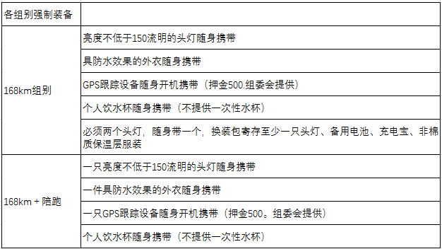 b)领取参赛包需要检查强制装备,强制装备不过关的人员不予以领取参赛包。