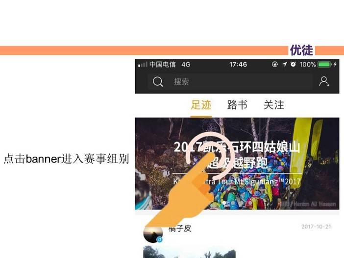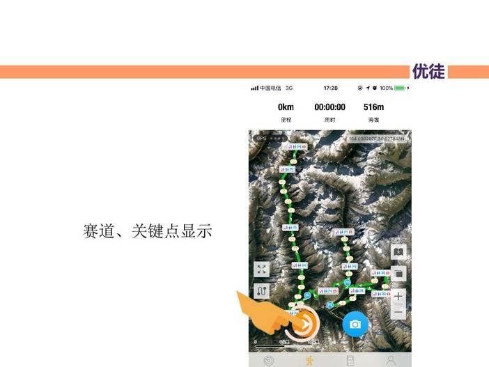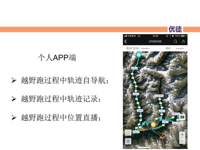 可以实现越野跑过程中轨迹自导航,轨迹记录,位置直播。
