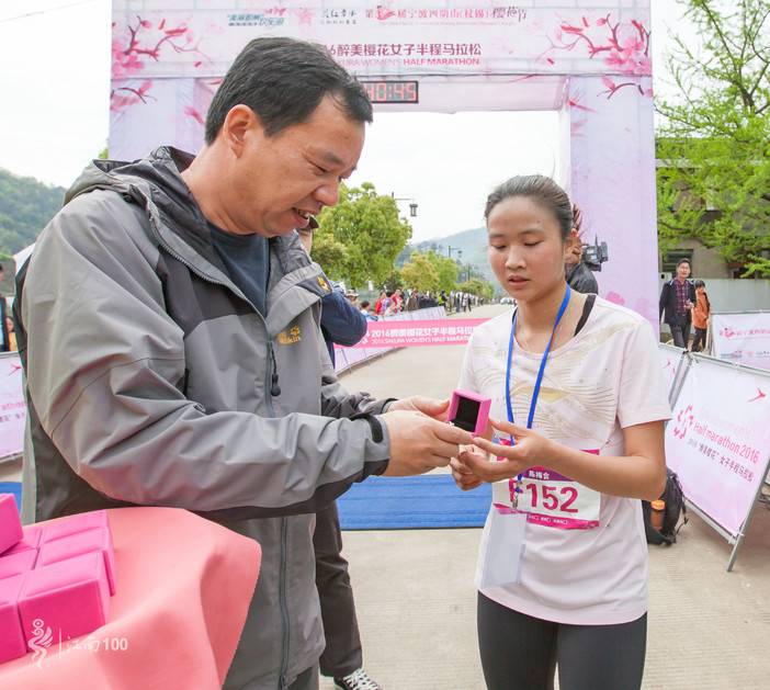 打破2015届“醉美”樱花女子跑半程组(21km)1小时33分记录