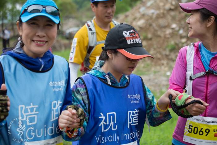 江南100更显非非凡之处在于特邀了日本视障碍跑者和小铃声团队
