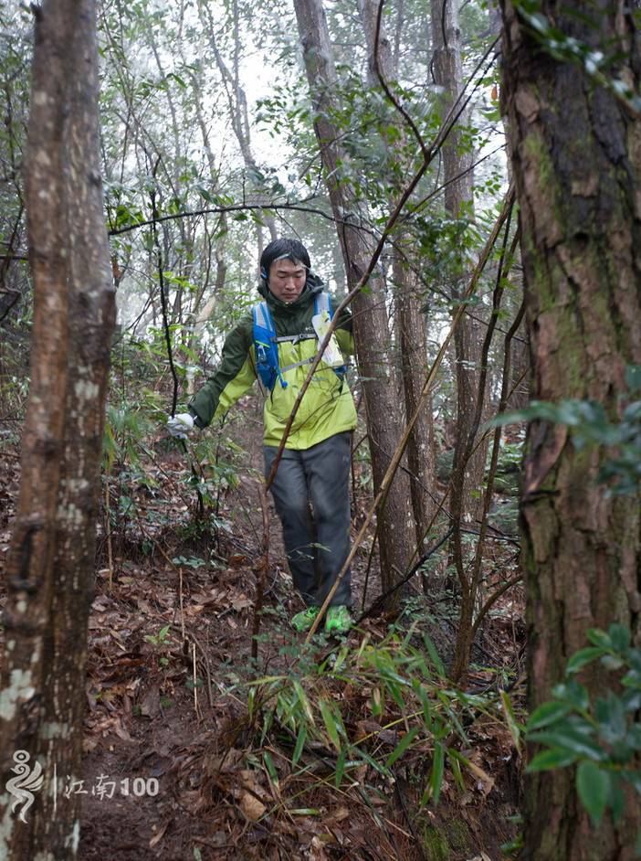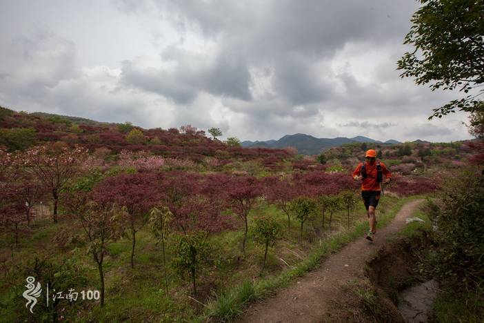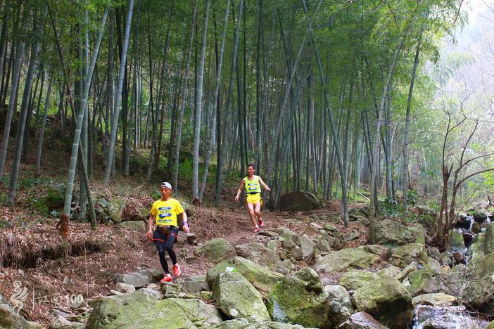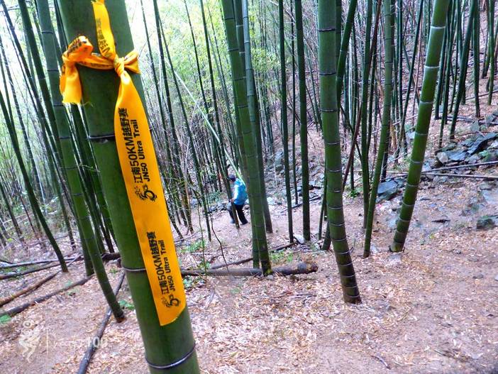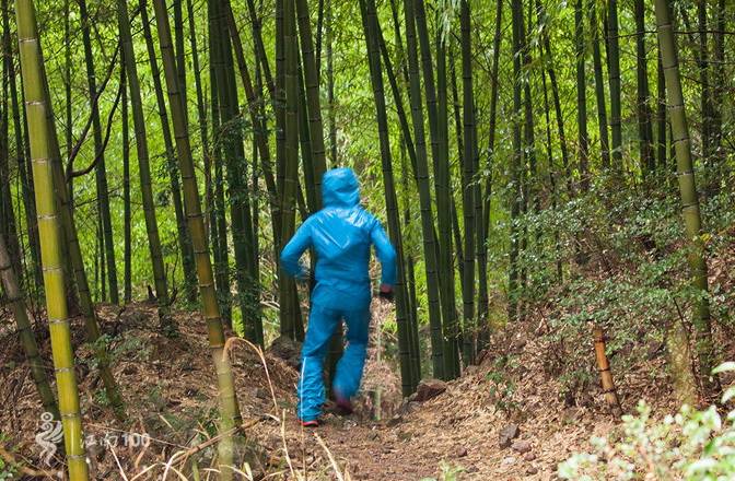 出遮坑村跑小段公路后进入3公里平缓的越野路,到路口右转,在竹林中急剧下降300米小心攀爬,到姜家山村,过桥,然后沿林间小道爬升400米,穿过一片樱花林后,再沿着左侧防火道爬升100米到商量岗。