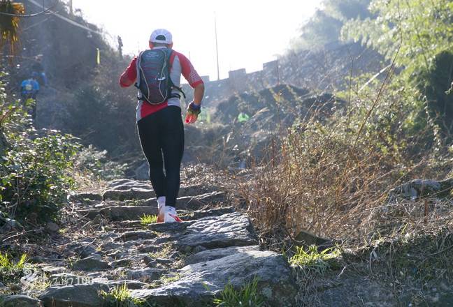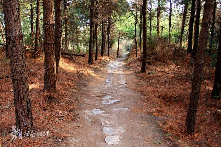 五龙潭牌坊出发,前4公里沿着竹林和松林间的古道爬升500米,出古道右转沿公路跑几百米后看见观顶湖,右转过大坝沿湖越野路跑到湖尽头,穿过观顶村,沿着公路和古道爬升100米跑到最高处百步岭,再进入一段古道下切到遮坑村。爬升段多是古道,注意防滑。