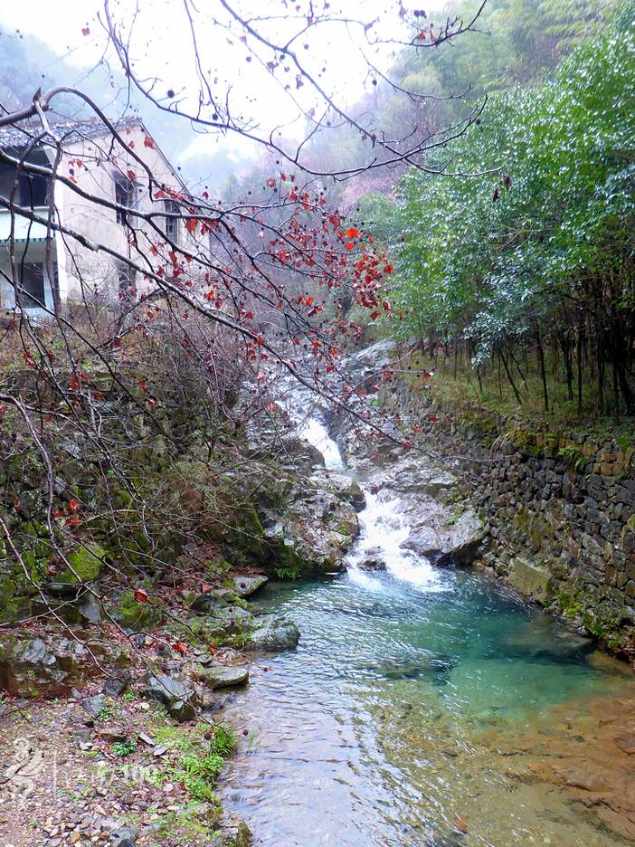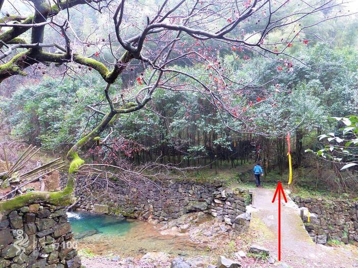 出栖霞坑村,沿着3公里溪边古道缓慢爬升300米,然后是平缓的2公里樱花林越野路,到唐田村左转,穿村500米后再左转,穿过1公里樱花林后爬升100米,到杉树林,然后是3公里陡峭古道下降500米到壶潭。古道下坡注意防滑。