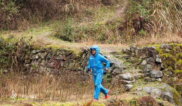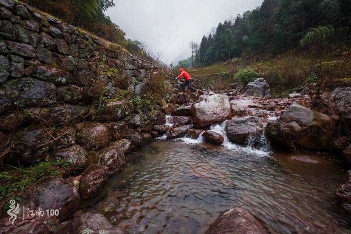 出华山村,跑2公里平缓越野路到公路,右转沿公路跑500米,到路口再右转,跑2公里平缓越野路,再1公里古道下降200米到大俞村,再1公里公路到百步阶村,再1公里古道爬升200米到杖锡村,再500米公路后左转,再2公里古道下降200米到李家坑村,过桥,200公路后上左边古道,再1公里古道爬升100米到柿林村,再走古道下坡到赤水桥,在桥边右转下1公里沿溪台阶到丹山赤水