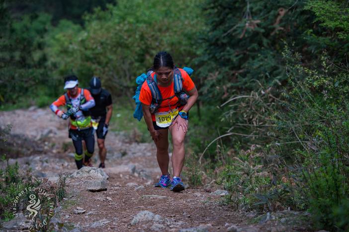 "跑越野实际上是很危险的,尤其是对我这种完全没有赛场经验的参赛者来说。上山时由于对前方路况的不熟悉,加上持续陡峭的上坡我一度觉得喘不上气。这时正好遇上了金基镐先生,他们看到我们一行三个女生挑战越野,主动提出轮换来陪我,顺便传递一下陪跑经验。
