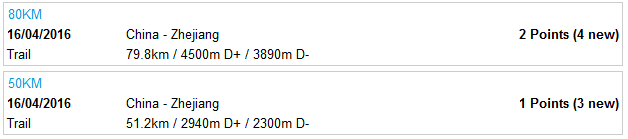 除了原来60Km组会得到4个积分外,我们把另外未抵达终点的选手,按照积分计算分成了80KM与50KM两个组别进行了申请,现在UTMB组委会也已经确定这两个组别可获得的相应积分。