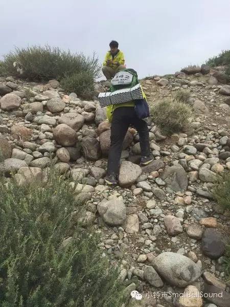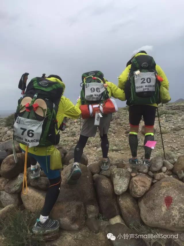 第三天的赛道是这次比赛中最难的,40公里的距离有2段属于难点,要翻过两座山,然后过一段乱石滩,对视障选手来说非常困难,本来还要趟河,还好据说河床干枯了,戈壁上的河就像善变的天气,一会有水一会没水。再加上非常紧张的关门时间,对我们几个最慢的选手来说会很困难,虽然极地长征的关门时间执行得不严格,据说只要不是受伤或者超时太久,一般都不会强制关门,但是我们都希望能在要求的关门时间内完成比赛。