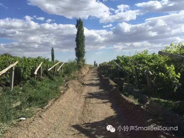 今天我们穿过了高速公路涵洞,王琦又是四肢着地爬了过去,远处一列火车开过,赶快让Taka听火车的声音,今天后半段换我来带Taka,他走起来很快,节奏和王琦很不一样,王琦是走一段就要休息会,Taka是就一直走,都不用怎么休息,可把我累的。最后我们经过一个葡萄园和村庄,可惜葡萄都还没有成熟,不然摘几串吃吃该多甜啊,路面看到很多墙上都是孔的小房子,应该就是晒葡萄干的地方了,村庄里长着几棵高大的桑树,路上掉满了桑椹,后来回哈密吃到买的桑椹,比我们这边的甜多了。