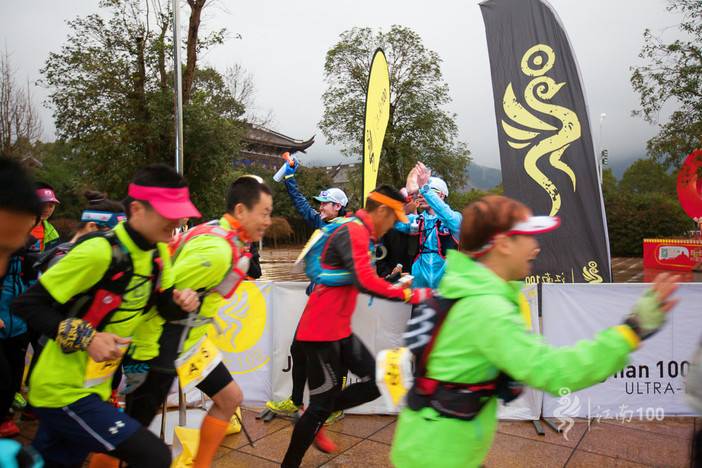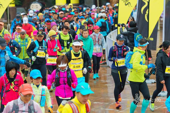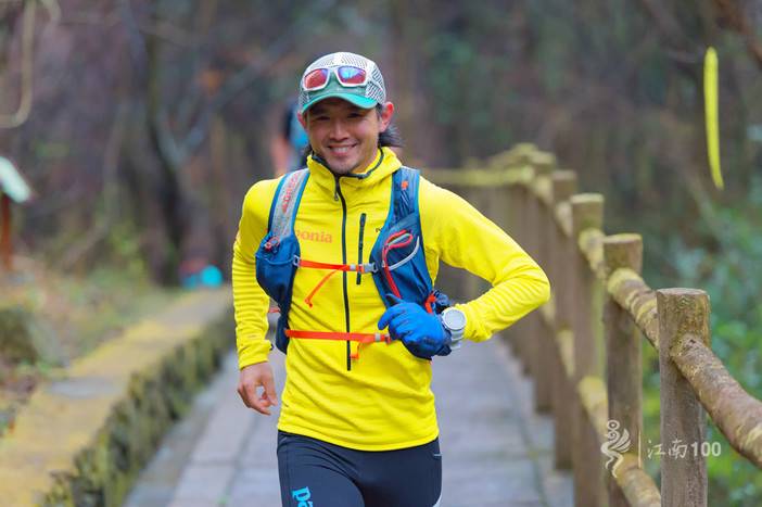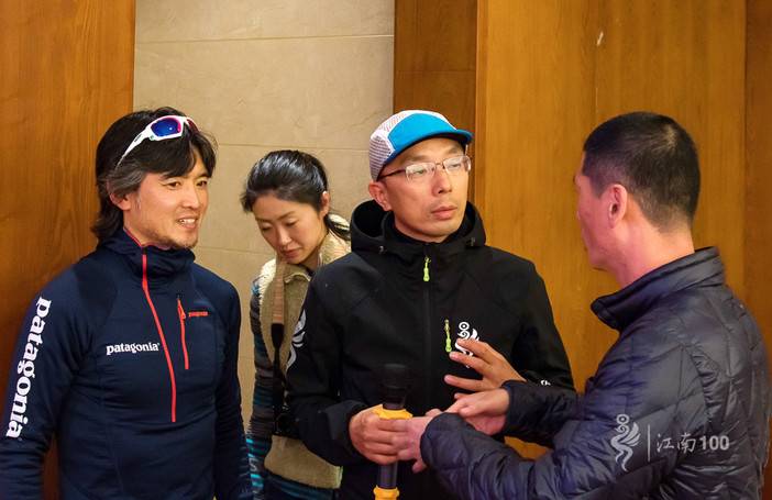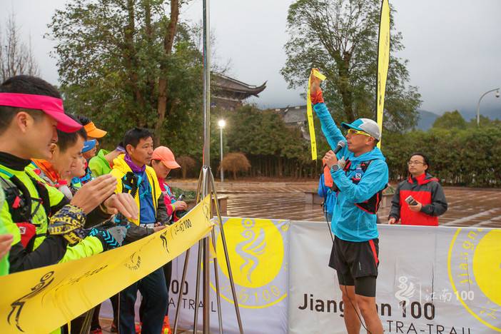 江南100赛事总监农民CPA作简短的赛道说明,日本著名赛事“信越五岳”越野赛赛事总监石川弘树鸣号起跑。