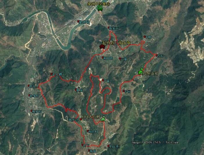 起点(南山章:南山广场)-(黄罗洋)-(里山季)-(平园)-(陈家岙)-(终点:南山章)