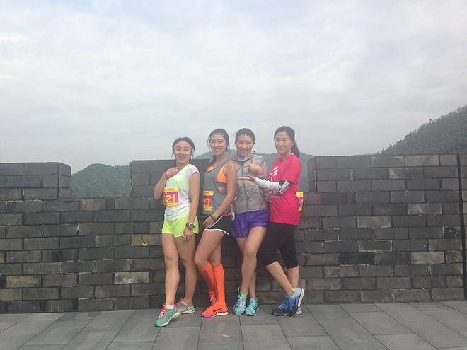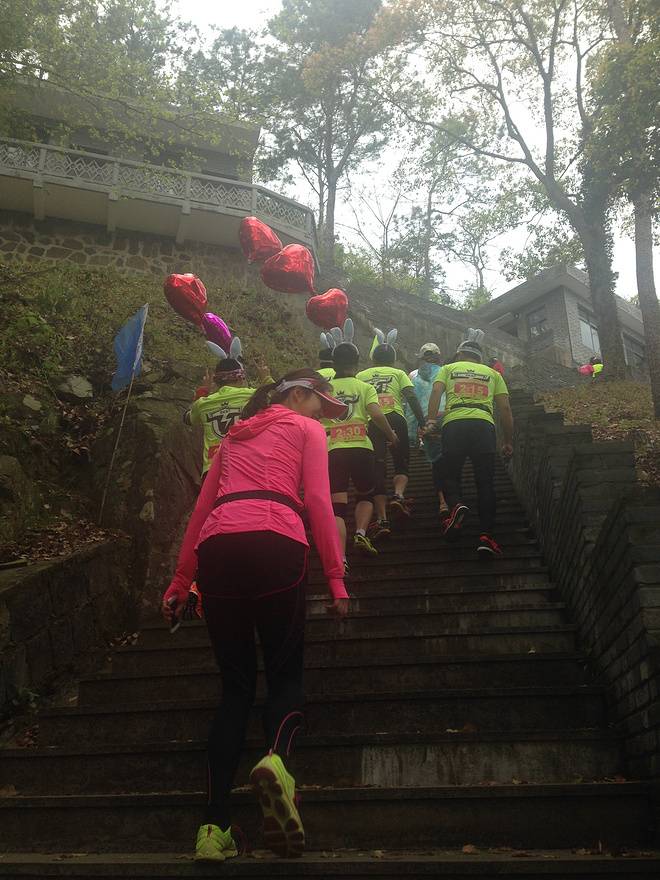 爬了好多台阶才到起点,前面戴兔子耳朵的就是帅哥陪跑团,完赛时间从200-300不等。