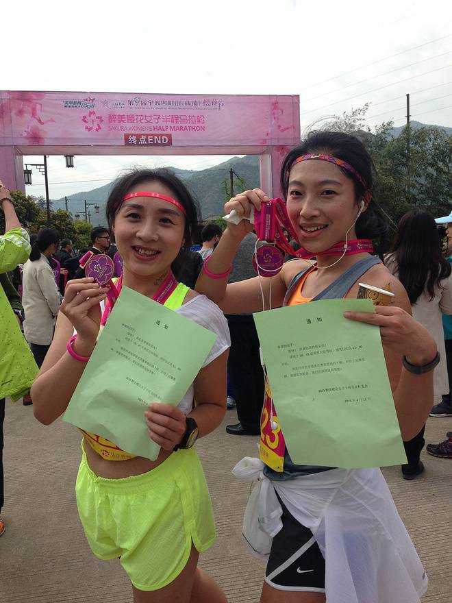女 子比赛其实一点也不比男女混赛柔和。在满是女生的赛道,女生们更不想认输。除了打量你从头到脚怎么穿怎么打扮,更不想在速度上输你一分一毫,尤其是当大局 基本已定,大家看起来水平相当。之后的10k我就是这样跟四五个女生一路你追我赶,辛苦又觉得其乐无穷。最后几公里终于把她们都甩下,这一路也算没白辛 苦。更开心的是跑到终点竟被告知有奖金(怪我自己没有细看参赛说明)!想不到竟然能用跑步换钱!