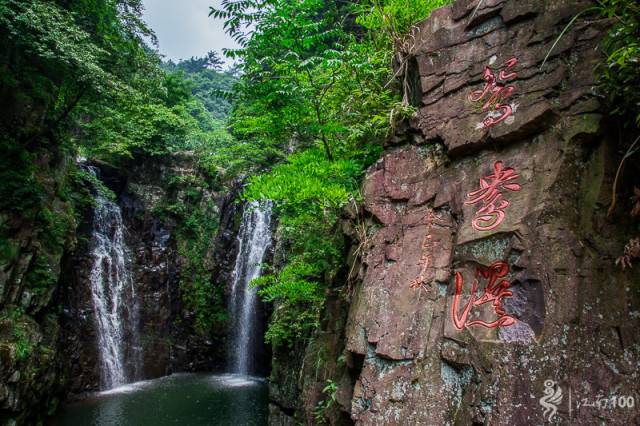 三隐潭位于雪窦寺西北五里许。涧水从东岙村流入崖口,折为一瀑;再落山腰,直至山足,形成三级瀑布。所以,称为三隐潭。