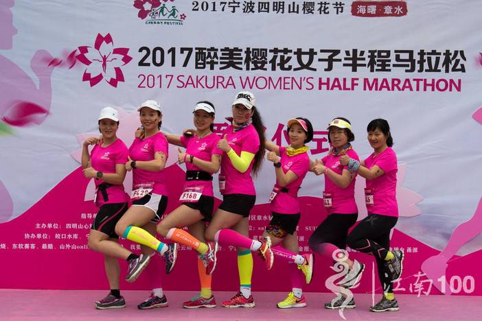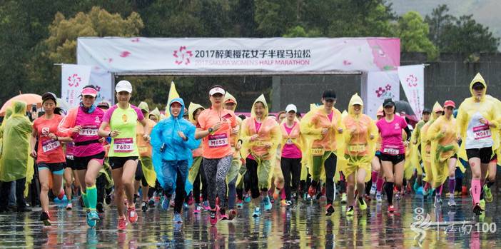 2017年4月9日,江南一百“醉美”樱花女子半程马拉松赛事伴随着春天的雨点完美落幕。