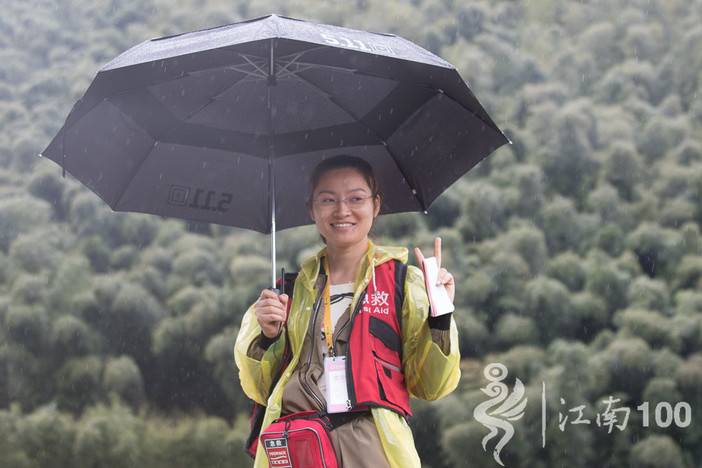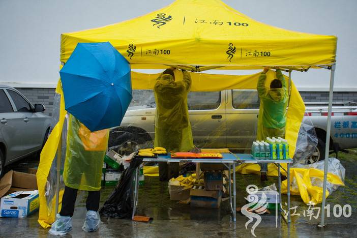 在终点站为淋了雨的选手们递上一杯热腾腾的姜茶