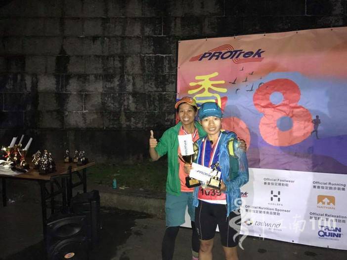 而当时我有认识一个北京的跑友,叫“玉姐姐”她也是第一次参赛,但她跑得比我快很多,每当我到达检查站的时候,她已经准备离开,还记得当时比赛有个赛段补给全靠人工托运,出现了没有饮水补给的情况,志工们把他们早晨喝的牛奶,水果无偿的贡献出来给了我们参赛者,当时令我非常感动,玉姐姐提前到达,因为怕我晚到没有吃的,所以有事先帮我留了一些水果,竞赛中最可贵的莫过于跑友之间的相互关心,照顾了!而之后因为玉姐姐下坡膝盖出现问题,即使是我把我的护膝借给她使用也于事无补,最后她不得不退赛,我抱着多跑一公里就赚到的心态,继续前进,全程抽筋大概抽了4,50公里,双脚一直在颤抖,然而因为我的坚持不放弃,后来身体有了好转。最后我竟然取得了女子第4的成绩。