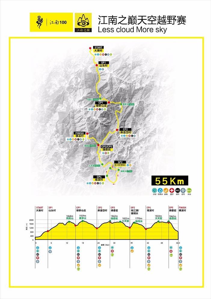 55Km组将翻越四座1800m+的山峰,征服江浙之巅-黄茅尖(1929m)。洞宫山系是浙江的屋脊,有11座海拔在1800以上的山峰,赛道穿越龙泉山4A景区,55Km,累计爬升5200 m,将超越很多100Km爬升难度。