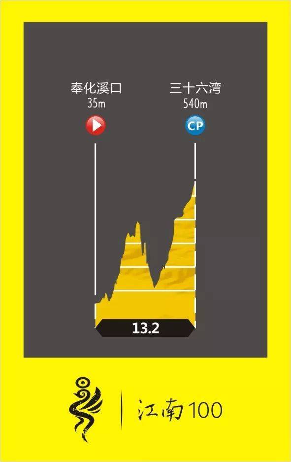 起点——CP三十六湾。距离13.3公里,爬升980米,下降554米,区间限时3小时,所有组别都经过。以景区、河谷为主,有少量土质野路和少许箬竹林。别看爬升多,但坡度不急。春游乐跑,不知不觉完成。关门时间不是很宽裕,要快一点。主要路况:公路15%,游步道70%,野土路15%。