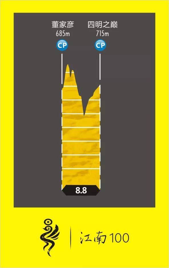 CP董家彦换装点。这是168组、110组、85组的换装点,是110组的陪跑者加入点。这里已经属于嵊州市管辖,是继奉化区、余姚市、海曙区之后,百英里赛道跨越的第四个行政区。168组到这里累计距离101.4公里,累计爬升4457米(第二次到这里130.1公里,累计爬升6016米)。关门时间为4月15日19:00(第二次为4月16日的3:00)。110组到这里累积距离45公里(第二次到这里73.7公里)。关门时间和168组一样。85组到这里累计距离45公里,累计爬升2499米。关门时间为4月15日19:00。这是首次实现一个换装点经过2次,选手等于增加了一个换装的机会,这是其它比赛没有的设计。