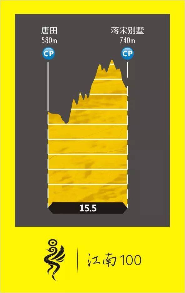 CP唐田——CP蒋宋别墅。距离15.5公里,爬升695米,下降519米,区间限时4小时,所有组别都经过。这一段,要取道奉化区最高峰,海拔976米的黄泥浆岗,110组速度慢一些的选手将会在此迎来又一个黎明,而对于168组别选手来说,很可能要在这里迎接赛道上的第三个白昼。赛道经过的这整座山,叫商量岗,又被称作“第二庐山”,宁波著名度假胜地。赛道以防火道和机耕路为主,还有一些园地小路。主要路况:田间小路30%,机耕路40%,防火道30%。