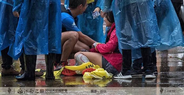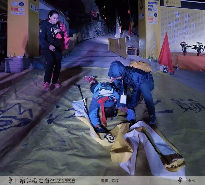 16:08 百山祖,受台风影响,50公里组被迫启用备用赛道,选手艰难到达终点后摔倒