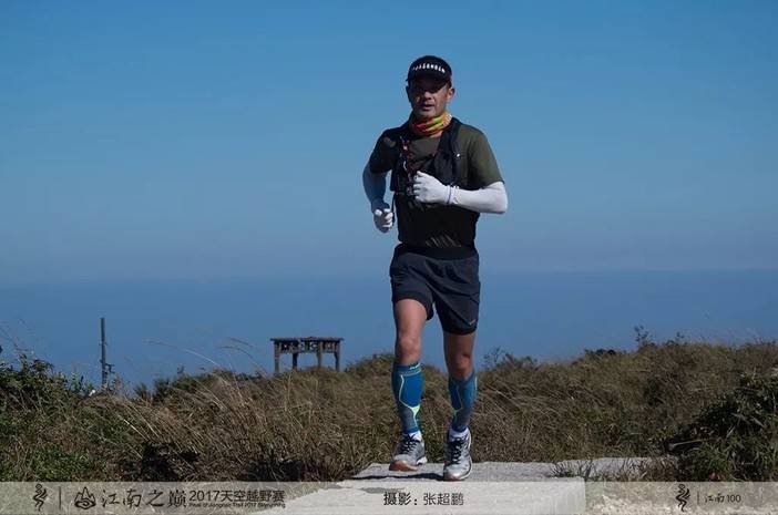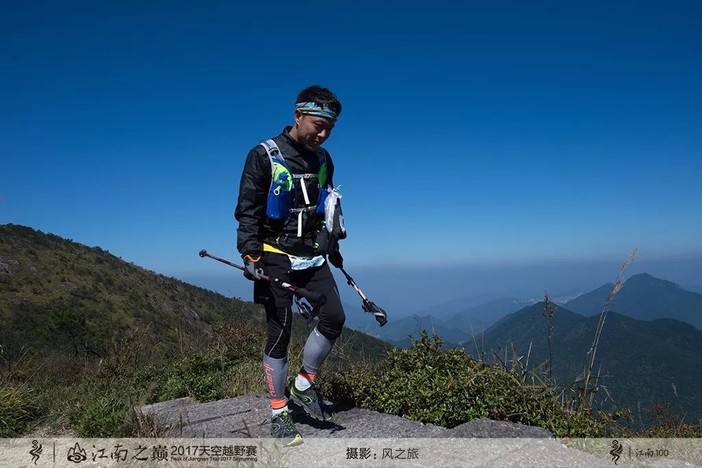 2017年江南之巅天空越野赛遇到了好天气,自始至终天气晴朗,空气质量优。第一梯队选手竞争十分激烈,交替领先,直到烧香岩最后一个折返点才锁定55km组第一名。