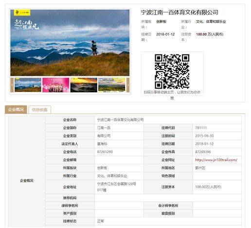 2018伊始,宁波江南一百体育文化有限公司登临宁波股权交易中心,交易代码:781111,并且在2017跑在一起·爱燃烧年终评选中荣获跑者之选·最佳进阶:江南之巅天空越野赛,江南100,必定每一年在平凡之中成就不平凡。