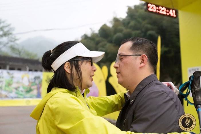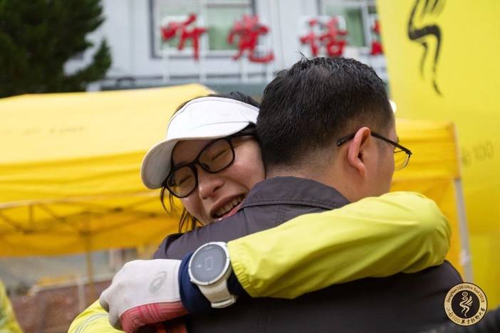 85km女选手关门前一刻到达终点时,丈夫泪目一把抱住妻子,久久不肯放开。原来,丈夫凌晨一点就在终点守候,出于担心,还拿了手电筒和雨伞上山寻觅妻子,在妻子的劝阻下,丈夫回去后又再次上山,直到背着妻子一路走到终点。一个平日里膝盖状况不好的丈夫,因为担心妻子,频频两次上山,直到将妻子背到终点才安下心来,这份夫妻间浓到深处的情谊,让我们不禁感叹,无论何时何地,爱你的人总在等你凯旋。