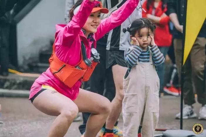 作为一个三岁孩子的妈妈,壁虎参加比赛常常会带上小馄饨。这一次出征江南百英里这样的比赛,同样少不了女儿和爱人的陪伴。起点前热身,小姑娘望着充满活力的妈妈,捂着耳朵和妈妈一起望向舞台的领操教练。鸣枪出发,妈妈跑了,小馄饨哭了,哭得很伤心。