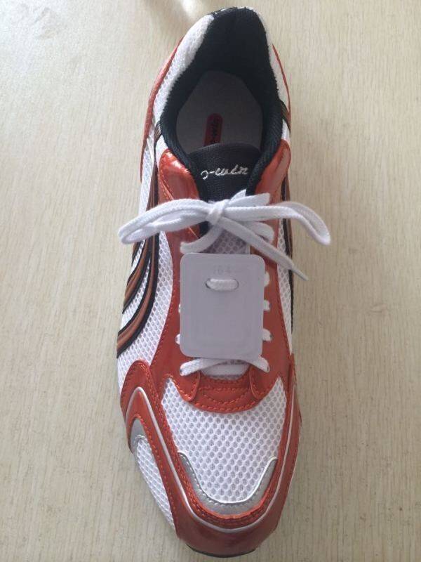计时芯片不分正反面,运动员必须将大赛组委会赛前发放的计时芯片按照规定穿在鞋带上:把鞋带穿过芯片上的2个圆孔,尽量保证芯片与地面平行,并收紧鞋带(系法见下图)。