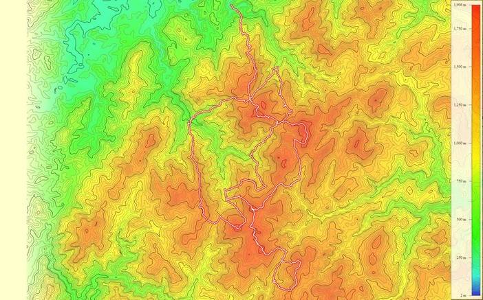 全程最大的持续的一口气的爬升(1500m),长时间没有水和食物的补给,中途有在茂密树干中穿越的路线,山顶时有强风和降温。