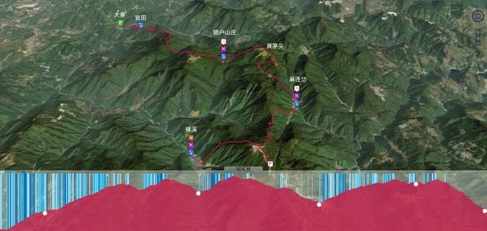 该段既是全程可跑性最强的部分之一,又是最考验意志的一段之一,看着不远的山峰,却上上下下爬不完的坡。这一段,从人文、风景两个方面看,都是江南之巅的灵魂。关门时间继续收紧。耗费体能为2000大卡级别。选手的速度从这里开始明显扩大差距,由于是要折返的赛道,会被高手“套圈”。