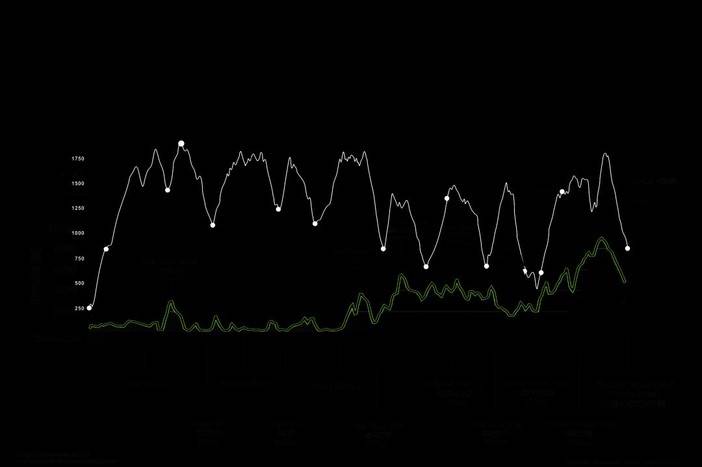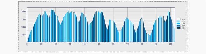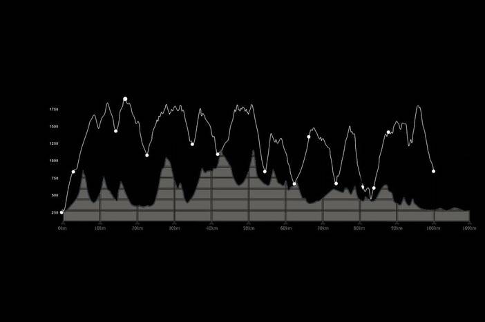 没有悬念的再一次持续爬升、持续下降,在爬升图上画出一个A字形。这一段地形非常复杂,在大的爬升下降态势中还包含着许多上下坡。能够在这一段得到A级的挑战者,毫无疑问是高手中的高手。如果没有分配好全程的体能,或者在意志上发生了动摇,对于大部分参赛者而言,CP8,可能就是终点。