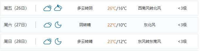 27日:多云到晴,8~16℃;东北风,<3级 28日