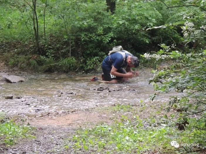 33迈之后,再次步入山野小径,小径大多是石头路和泥土路。虽然还没下雨,但因为前几天的雨,不少地方有些泥水坑。其中一个水站设在交通工具无法通行的森林中,而这个水站的传统是靠骡子拉水。这次骡子拉水的路上倒了几棵树,骡子过不去,于是补给站也就相应的向前挪了两迈。