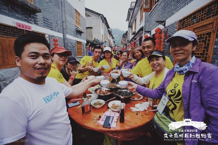 除去单纯的竞技奔跑,此次赛事更是一个近距离了解边城庆元的绝佳契机,选手们用两天一夜的时间精雕细琢认真研磨,细细品赏廊桥王国的独特魅力。当白天鏖战结束,夜幕降落,百米长桌沿街而设,各式点心菜肴纷呈上席,琳琅满目无法道尽,绣口一张,就是大半个盛唐。