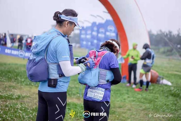 而这一切故事,都发生在一个稍显糟糕的天气之下。对于诸多选手而言,向上的赛道除了艰苦卓绝的爬升之外,还有不时侵袭的风雨,狂风大作,大雾弥漫,能见度极低,对每一个选手而言,不仅仅是身体上的鏖战和装备准备上的考量,更是意志力的比拼较量。相比之下,悟越野fuji100完全有别于我们所常见的越野赛,既不是大型户外聚餐,也没有密集精准的路标,补给点之间的距离也稍显冗长,对于选手的考验自然更加巨大。