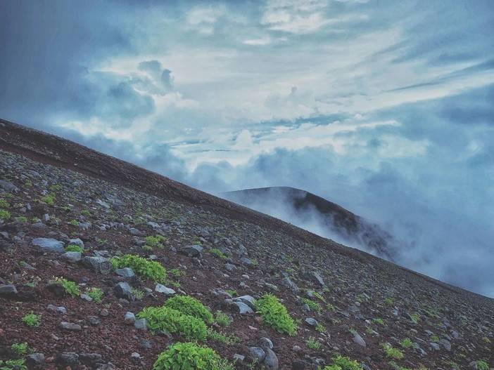 富士山,日本最高峰,海拔3776米,直贯海底的一座雪山,山脚到山顶的温差达到20度,跨越了完全不同的植被和气候。从山脚到山顶,42公里3776米爬升,对于一般的登山者,这会是两天一夜的一个行程,为了确保能够在山顶看到日出,大家必须经受寒冷孤寂的黑夜。