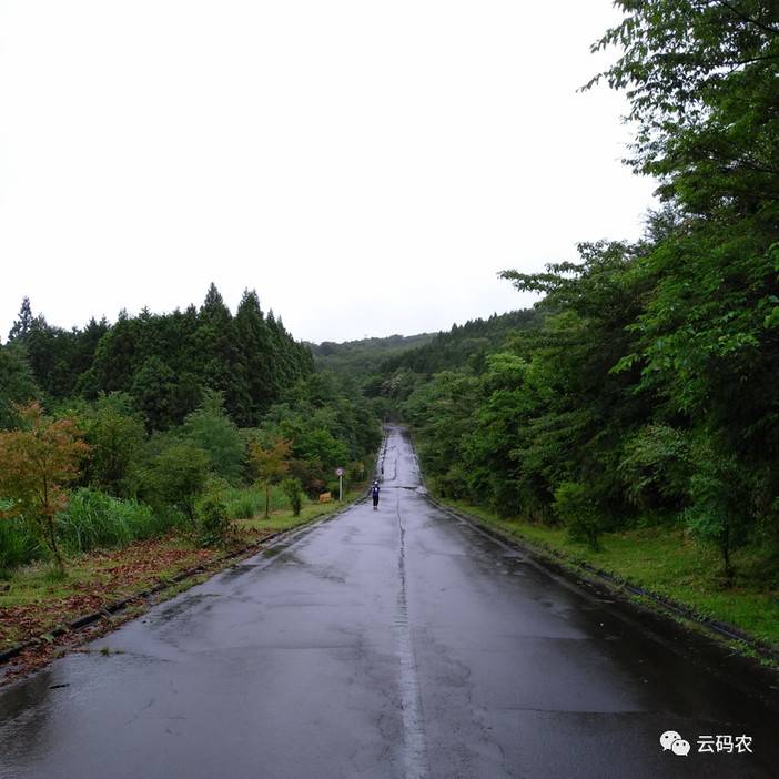 山间气象变化多端,一会儿大雾弥漫,偶尔能看到其他选手,再一会儿雾就全散去了。然后是一段连续起伏的公路。