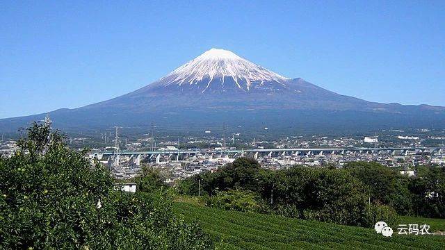 富士山是日本最高的山峰,其圆锥形山体是日本的象征。